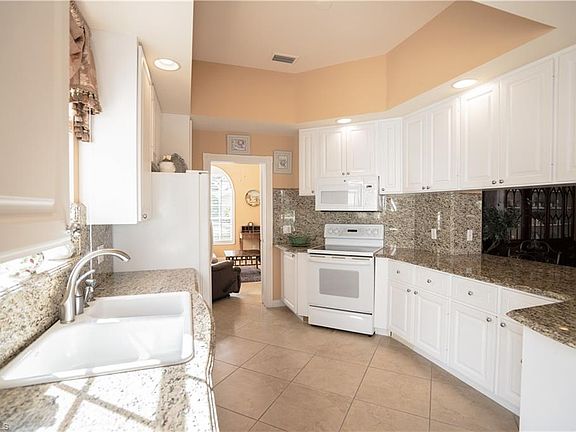 This bright, sunny Lakefront Oakmont welcomes you with its popular Side Load Garage and Screened Entry to the home...so perfect for our cooler Naples breezes. This Open Floor Plan has a Great Room with 12 foot ceilings and there is upgraded porcelain tile throughout...even the Lanai and Garage have easy care tile for your convenience. Additional features include Storm Shutters, Central Vacuum and Security System. The generous open kitchen is ideal for entertaining and the spacious Screened Lanai overlooks a serene Lake setting. Located just a short stroll to the Town Center with all its amenities this home has LOW FEES that includes HDTV and High Speed Internet. The many Amenities includes 2 resort-style Community Pools, 8 lighted har-tru Tennis Courts, a large updated Fitness Center, Putting Green, Bocce Courts, Restaurant, Gas Station, Car Wash, Hair and Nail salon, Library and Post Office. All this and built solid by DiVosta whose poured concrete construction is known for quality and craftsmanship. Just minutes to dining, shopping and Naples breathtaking "white sand" gulf beaches. Come, see for yourself what Resort Living is like!