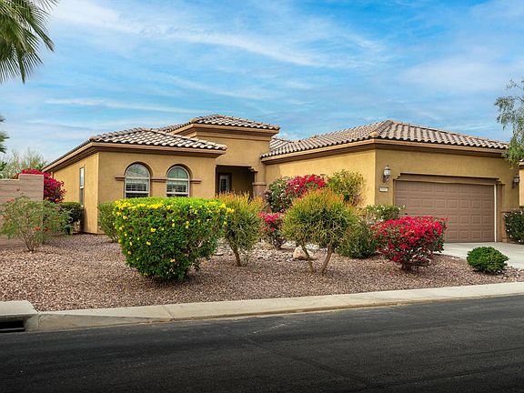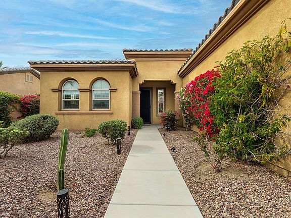 Mountain Views and Golf Course Living!Experience stunning southern views of Mt. San Jacinto and Mt. Gorgonio from this beautifully furnished Avalino floor plan in Sun City Shadow Hills. Perfect as a seasonal retreat or year-round residence, this 2-bedroom, 2-bath home with den/office offers comfort, quality, and resort-style living.The open kitchen features Corian countertops, double ovens, a gas cooktop, 42-inch cabinetry, a step-in pantry, and a breakfast bar overlooking the spacious great room ideal for gatherings and everyday living. Plantation shutters throughout add privacy and elegance, complementing the high ceilings and tasteful decor.The primary suite provides a relaxing retreat with dual vanities, a soaking tub, separate shower, and custom walk-in closet. A guest bedroom and den offer flexible space for visitors or a home office.Step outside to enjoy the ultimate in desert outdoor living. The elevated patio above the 12th green of the North Course features two new motorized 10-foot extendable awnings, a new outdoor L-shaped sectional, and five matching gliding chairs, creating the perfect setting for entertaining or relaxing. The fire pit and alfresco dining area make this space ideal for both cool winter evenings and sunny summer days.This turnkey home captures the essence of desert living refined, comfortable, and perfectly situated in the heart of Sun City. Sun City Shadow Hills offers two championship golf courses, resort-style clubhouses, state-of-the-art fitness centers, pools, tennis and pickleball courts, and an abundance of social clubs and activities for the desert lifestyle.