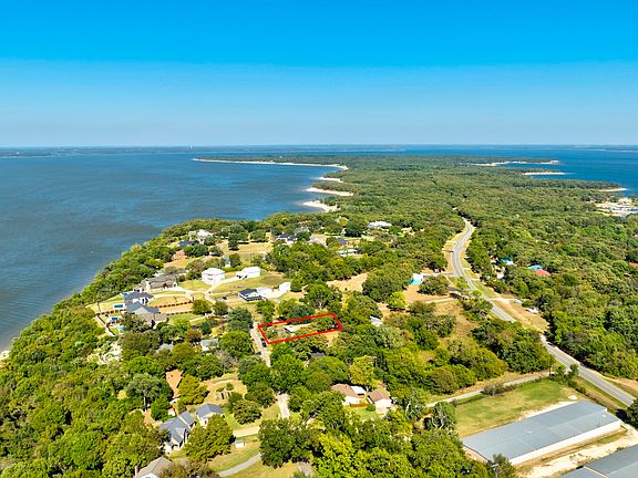 Charming Cottage- in PRIME LOCATION just across from the beautiful waters of Lake Texoma! Nestled on a spacious corner lot with trees and serene surroundings, this delightful 2 bedroom, 2 bath cottage is ideal for lake living at its finest! Take a stroll to enjoy lake views or a golf cart ride to the waters of lake Texoma and boat ramp! The home features a spacious kitchen, large living area with wood burning fireplace, and large bedrooms. The primary suite includes a cedar closet and good sized bathroom! The additional bedroom has a walk in closet with laundry area, (utility closet in hall also has room for washer dryer if you prefer with hook ups), great floor plan! Recent updates are all new plumbing and new hot water heater! Out back is a storage barn perfect for storing lake toys! Bring your imagination, with updates and this desirable location, this property could be short term rental or lake home at it's finest! Don't miss your chance to own SO close to beautiful Lake Texoma!!! Home is being sold as is. Buyer and buyers agent to verify all info in listing.