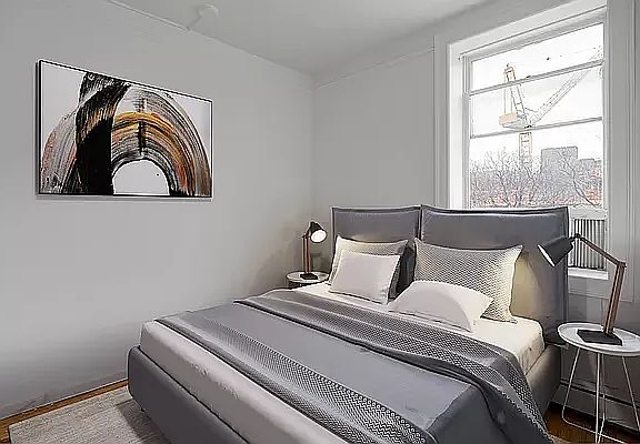 The queen-size bedroom faces south, bathing the space (and the living room) in natural sunlight. You'll also find generous closet space to keep everything neatly organized.