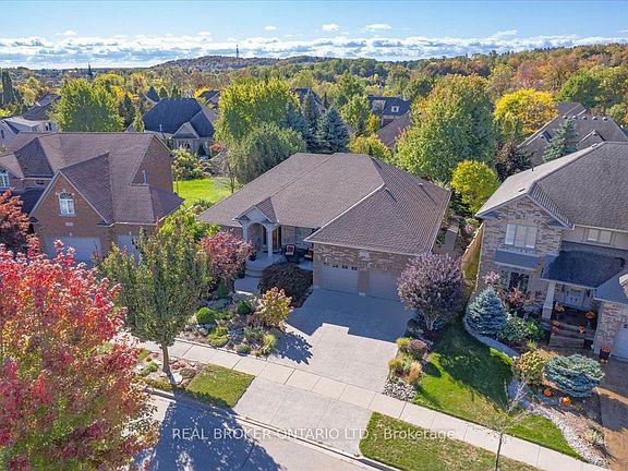 Welcome to 392 Deer Ridge Drive, set in one of Deer Ridge's most private enclaves, this bungalow offers over 4,500 square feet of beautifully finished living space. From the moment you arrive, the home makes a lasting impression with manicured landscaping, a grand front entrance, and exceptional curb appeal that reflects the quality and care found throughout. Inside, 12-foot ceilings stretch across the main floor, creating an airy, open feel the moment you walk in. The layout flows seamlessly, featuring a formal dining room, a flexible home office, and a bright living area centered around a gas fireplace. The kitchen delivers on both style and function with a large island, abundant cabinetry, and direct access to your backyard retreat. The main floor includes two bedrooms, highlighted by a primary suite with a private ensuite featuring a glass shower, soaker tub, and double vanity. The lower level expands the home's versatility with a spacious rec room, bar area, two additional bedrooms and a home office or playroom, a full bathroom, and plenty of storage. Outside, the fully fenced yard is surrounded by mature trees and includes a concrete patio offering privacy and plenty of space for outdoor living. You're minutes from Deer Ridge Golf Club, one of Canada's premier private courses, surrounded by scenic trails, mature trees, and quiet green space that make this community feel like an escape from the city. With fine dining, shopping, and quick highway access just around the corner, it's easy to see why Deer Ridge remains one of Kitchener's most coveted places to call home.