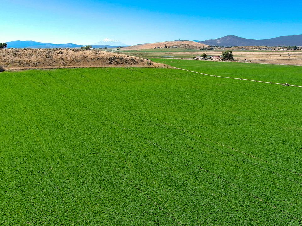 The Rossetto Ranch is on the market! Scenic beauty meets income-producing potential. This one-of-a-kind 187± acre farm/ranch property captures breathtaking views of Mt. Shasta and the surrounding countryside. In the heart of Klamath farmland, this true agricultural property offers multiple income streams including a charming home, off-grid glamping site with potential short-term rental income, seasonal hunting lease, alfalfa crop lease, annual grain production and premium irrigation rights with an abundance of water. The upgraded irrigation systems, rich soils, and laser-leveled fields make this a farmer's dream. The landscape blends rolling hills, open pasture, and a small wetland flourishing with wildlife. 56x80 steel pole barn, newer 75 & 100 HP VFD pumps, updated main lines, fencing, and ranch roads. The updated-modern country farmhouse shines throughout with potential for an additional dwelling and possible partition into three parcels (per County Planning).