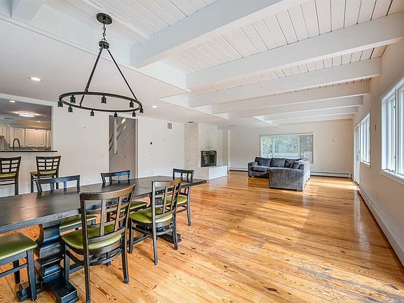 Designed by noted green architect, Bill Chaleff, this modern home offers a flexible floor plan and numerous unexpected amenities. There is a marble master bath and steam shower, eat-in kitchen with granite countertops, wide pine plank floors, central vac, and heated floors in bathrooms and kitchen. There are four bedrooms and five full baths, living room with fireplace, dining area, 24' x 40' ft. studio on second floor, partially finished basement, brick patio and plenty of room for a pool.