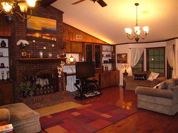 Fantastic spacious, updated, warranted home located on over 5 acres of beautiful grounds! This homestead has it all! Gorgeous REAL hardwood floors, cathedral ceiling, bay window, built-in book cases, huge master bedroom with on-suite bath and two closets (one is a big walk-in) and a delightful game room with a slate top, regulation pool table! Off of this room is a half bath and another bonus room! The kitchen and dining areas adjoin each other with brick pavers (too cool); stainless steel appliances stay, granite tile counter tops and a smooth-top stove, deep bowl sink w/new faucet too! Outside are open and covered patios, a gazebo/tiki bar on your way to the decked pool area.