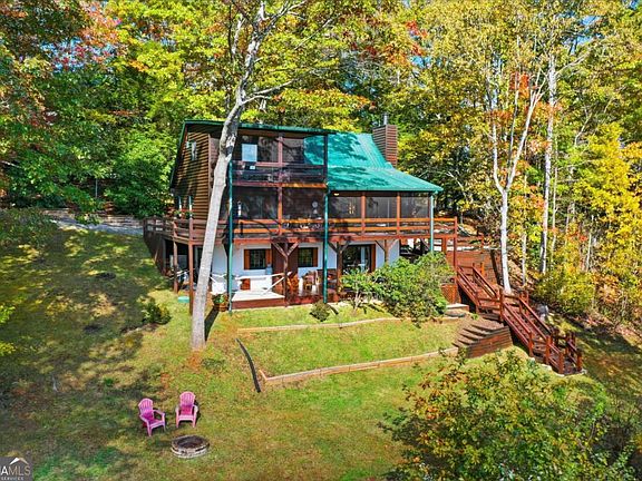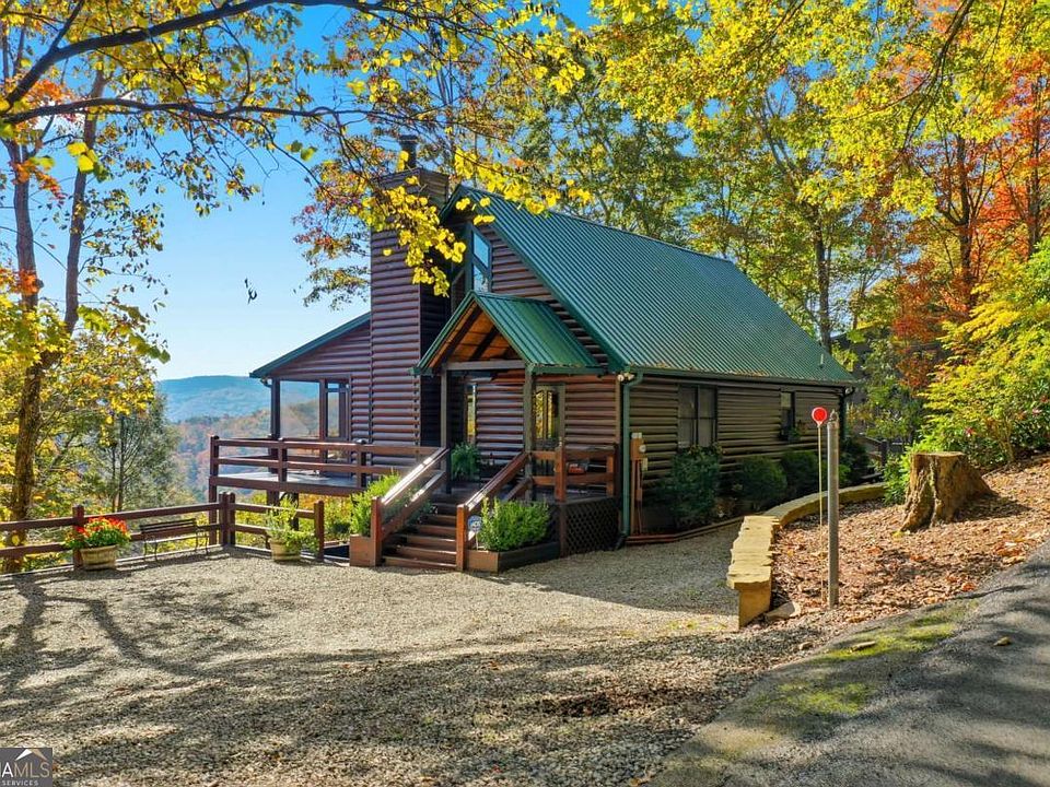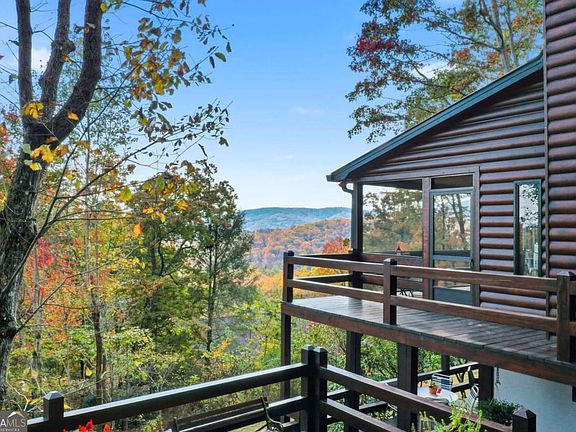 Only 5 minutes to downtown Blue Ridge-with INCREDIBLE VIEWS! This stylish mountain chalet with European flair showcases panoramic views from all three levels-each with its own porch-nestled in the highly desirable Aska Adventure Area with all paved roads. Arrive via a horseshoe driveway with ample parking and step inside to discover a warm, transitional design that blends modern comfort with vintage mountain character. Heavy beams, soaring ceilings, and elegant finishes create a cozy yet elevated retreat. The thoughtful layout features two suites, main-level laundry, and spa-like bathrooms that rival boutique hotels. The lower level offers a blank canvas-already plumbed for a bath and sink, with a functioning toilet-ready for your custom touch: game room, private suite, or workshop. Every major update has been completed: new floors, HVAC, water heater, retaining walls, gas logs, and a freshly restained exterior. The roof has been replaced since ownership, ensuring peace of mind. Short-term rentals allowed, no mandatory HOA, and high-speed internet make this an ideal investment or private mountain escape. With both screened and open porches, and a manageable yard perfect for relaxing or playing cornhole, this home is sold fully furnished and truly move-in ready.