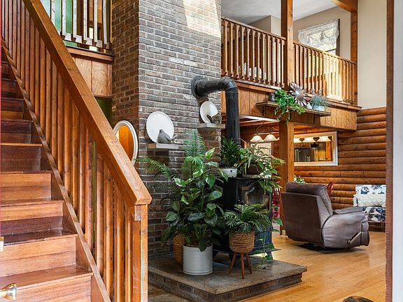 Tucked away in the Maine-Endwell School District, this stunning 3-bedroom log cabin on a paved circular driveway offers the perfect mix of privacy, comfort, and natural beauty. With 13+ wooded acres, an in-ground pool, and a spacious shop/garage, you’ll feel like you’re living in your own private retreat. Inside you will find soaring vaulted ceilings with skylights and hardwood floors creating a warm, airy feel. The heart of the home is the updated kitchen, designed with custom hickory cabinetry, deep drawers, granite countertops, custom pantry and a large custom island—perfect for gathering or simply everyday living. You can enjoy first floor living or make the 2nd floor your private master with ensuite and an open loft to use as your extra living space. Spend summers by the pool, explore your wooded acreage on the trails, or relax on your front porch surrounded by nature. Whether you’re looking for peace and quiet or space to entertain, this property offers it all.