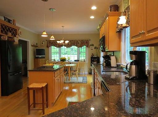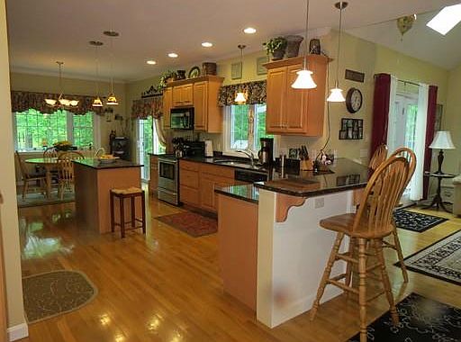 IMMACULATE, tastefully decorated & well maintained 4 bed, 2 1/2 bath colonial set on almost 2 acres. This home boasts a large cabinet packet Maple kitchen with granite counters, center island and breakfast bar. There's a large dining area with bay window & slider leading to the over sized 14'x22' deck, which is perfect for entertaining. Offering a great open floor plan with 9' ceilings, the kitchen leads into the large family room with pellet stove (negotiable) cathedral ceiling, skylights, ceiling fan, recessed lighting and French Doors to the deck. The first floor has hardwoods throughout. Half bath with granite, tile floor and first floor laundry. The large master suite offers 2 double closets. The huge master bath boasts a double vanity, whirlpool tub and a 4' walk-in shower. Additional features: Central air, plumbed for central vac, wired for alarm system, large walk-out basement, front farmer's porch, 2 car attached garage with interior access, shed, outside fire pit and more!