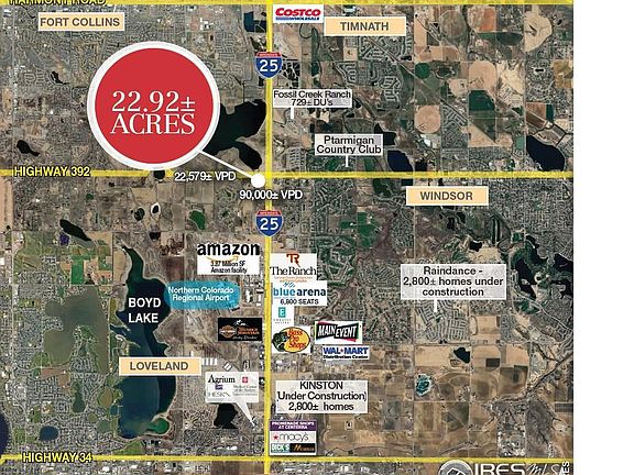 Outstanding interchange development site near the SWC of I-25 and Highway 392 in Fort Collins, CO. The site is approximately 22.92 gross acres with potential for a wide range of commercial uses, including retail, fuel/convenience, quick-service restaurants, medical, hospitality, and more. The adjacency to, and easy access from the I-25 interchange makes this site an appealing location for an array of uses. This prominent location is situated in one of Northern Colorado'sfastest-growing and most affluent areas (average household income of $186,000) and benefits from excellent connectivity to nearby communities such as Windsor, Loveland, Johnstown, Timnath, and Fort Collins. With access to two major thoroughfares-Interstate 25 and Highway 392-the property provides a rare opportunity for developers to secure a premier location in a thriving corridor.