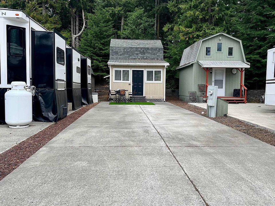 Welcome to easy coastal living in Diamond Point, Sequim! Nestled in a sunny and social 55+ community, this leased space offers a paved pad with room for a large 5th wheel. The property also includes a fully finished, outbuilding with power and water—featuring a washer and dryer, ¾ bath, refrigerator, and everything you need to set up a kitchen, plus sleeping loft. Whether you envision it as a guest space, hobby studio, or office, the options are endless.The $175/month HOA keeps life simple, covering garbage, water, sewer, laundry, clubhouse access, and maintenance. Residents also enjoy private beach access, a boat launch, and acres of trails at nearby Miller State Park. An affordable and flexible way to enjoy the Olympic Peninsula.