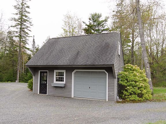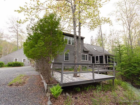 A beautifully built cape-style home with exposed posts & beams and a right of way to the Union River, just 5 minutes from the center of Ellsworth. Nestled into the tree line off Rt. 172, this home has privacy, a lot of character, and income generating opportunities. This well landscaped, two story home was a successful antique store in the past. The detached, one car garage/carriage house is ideal for a rental or AirBnB unit. Could also be a great space for an at home office. The R-2 zoning means this property can be a Bed & Breakfast, Professional Office, Nursery School/Day Care. There is a secluded screened-in porch that connects to the dining room through a pair of beautiful glass doors so you can catch a breeze inside or eat dinner outside! The porch is also attached to a bigger deck that wraps around a tree making it feel like you're in a treehouse. The views are private and wooded. Great for bird watching and morning coffee!