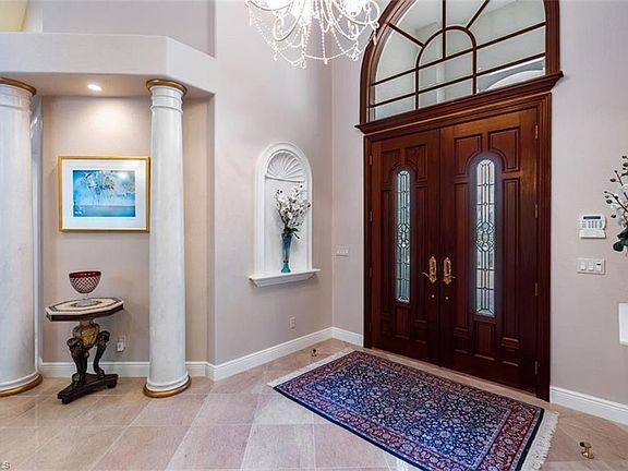 H.158 - Nestled in the back of the Terracina neighborhood overlooking the golf course, this 4 bedroom, den, 4.5 bath, estate home sits on a 1/2 acre lot. It has anew roof, paver driveway, updated kitchen with custom quartzite countertops, white cabinetry and stainless steel appliances, including double convection ovens with steam, warming drawer and compactor. The large master bedroom suite has a sitting room, master bath with walk in shower, dual vanities and tub, 2 large closets and minibar. Each bedroom has an en-suite bathroom for privacy. One of the bedrooms has been setup as a gym with e-core flooring for your workout, while the others all have wood flooring. The oversized lanai features an outdoor kitchen with seating, and stunning pool and spa. For peace of mind, the home comes equipped with a generator, whole house power surge suppressor, accordion shutters for the sides of the house and armor screen hurricane fabric for front and rear windows ,doors and across lanai. Golf, tennis, wellness center are optional amenities.