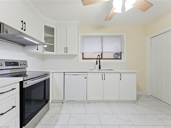 Welcome to this beautifully updated 3-bedroom, 2-bathroom BUNGALOW WITH SEPARATE ENTRANCE/MORTGAGE HELPER! overlooking a private park and greenspace! The upper level has been completely renovated and showcases a modern kitchen with quartz countertops, sleek porcelain tile flooring, and a spacious living room filled with natural light. Main floor laundry for the added bonus! Each of the three bedrooms is generously sized, with one offering a walkout to a large deck—perfect for entertaining or relaxing under the retractable awning while enjoying the serene views. Fully fenced yard is perfect to host and for kids to play. This home features parking for up to 4 cars and a separate side entrance leading to a mortgage helper suite, currently generating $1300 per month in extra income. Lower level with 2 BEDROOMS, kitchen, laundry and living room space! Recent updates include a new roof, ensuring peace of mind for years to come. Conveniently located close to parks, schools, shopping, and major amenities, this property offers the ideal blend of comfort, style, and mortgage helper. A perfect choice for homeowners or investors alike! Photos virtually staged main level vacant