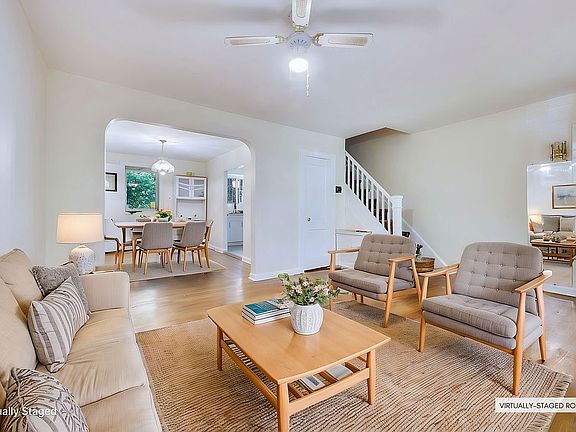 This lovely 2.5 story one family house is located in the Sunnyside Gardens Landmark District. The first floor features a traditional mudroom which leads into the living room adjacent to the formal dining room with a doorway leading to the charming deck overlooking the backyard. The bright modern kitchen with a large window overlooks the pretty gardens scenery. There is a doorway from the kitchen which opens on to the stairway leading down to the basement, where there is a full bathroom and laundry. The 1st floor staircase leads to the 2nd floor three bedrooms and a full bathroom. Another staircase is located from a doorway located in the 3rd bedroom leading to the finished attic. Lovely hardwood floors throughout the house.
