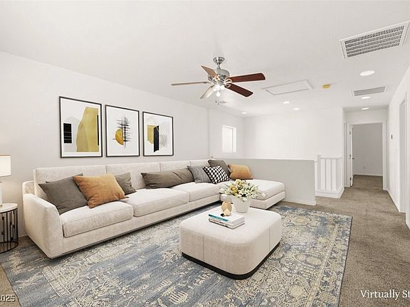 This beautiful home boasts 3 spacious bedrooms, 2.5 bathrooms, and a HUGE loft that offers endless possibilities for customization. The large kitchen island is perfect for cooking and entertaining, while the stainless steel appliances add a sleek touch, refrigerator is included and less than a year old. Custom paint throughout the home and ceiling fans in every room provide both style and comfort. The tile floors are both stylish and practical, creating a clean and modern look. Additionally, the home has been meticulously cared for with two new AC units ensuring year-round comfort, and the exterior was freshly painted within the last year. The interior has just been painted in March 2025, adding a fresh, updated feel to the space. Move-in ready and perfect for a discerning buyer, this home offers everything you need to enjoy comfort and luxury right away. Don’t miss out on the opportunity to own this gem!