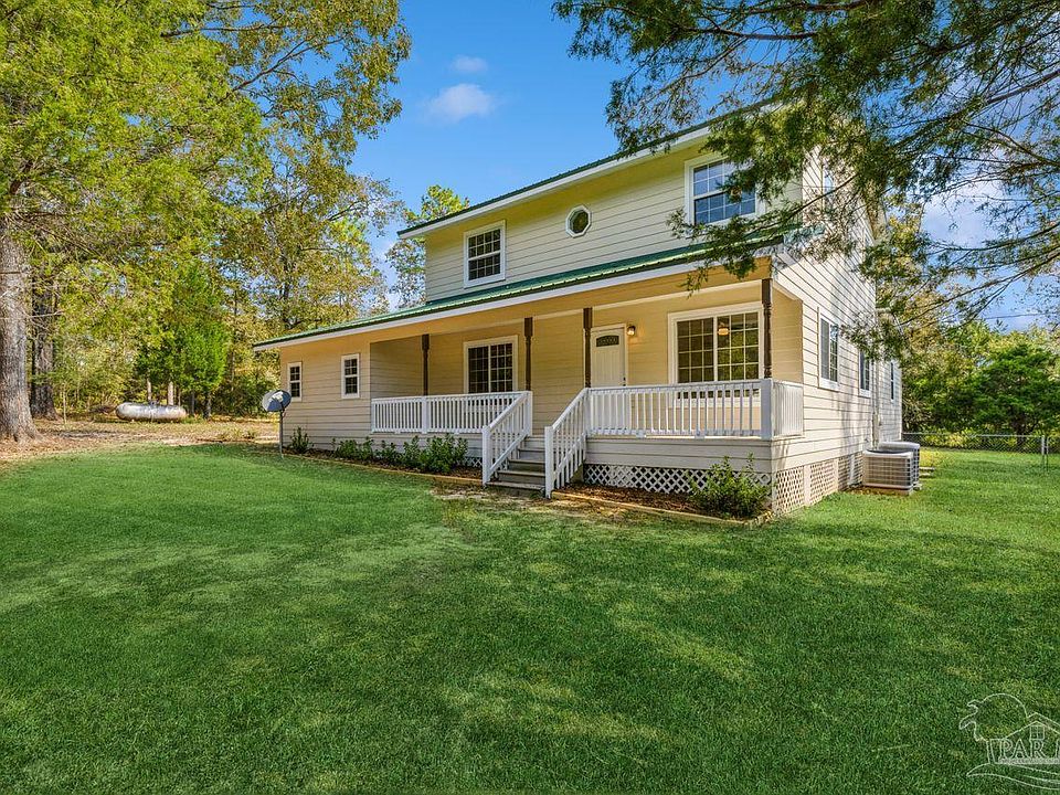Experience the charm of country living with this enchanting farmhouse nestled on 7.65 acres in the serene Munson Community, adjacent to a sprawling 100,000-acre wildlife management area. This home has been lovingly remodeled, including a brand-new 560+ sq ft master suite that promises comfort and privacy. With no HOA and no restrictions, enjoy the freedom of rural life with the benefit of low county taxes. The inviting two-story design features a spacious living room with gleaming hardwood floors and abundant natural light. Step outside onto the classic covered front porch, perfect for a swing and hours of relaxation while soaking in the tranquil country air. This home is not merely a place to live—it's a return to a simpler, sweeter way of life. Step into a beautifully remodeled haven on the first floor, featuring a living room, formal dining, a state-of-the-art kitchen, and an office/laundry space. Not to forget the half-bath, a versatile large bonus room that doubles as a den or theater room, a practical mud room, and the stunning new master bedroom suite. The craftsmanship is top-notch with new woodwork, doors, and framing throughout. Crown molding adorns every corner, even the closets, enhancing the elegance of the space. Essential upgrades like new insulation, sheetrock, and fresh paint have been meticulously attended to. The bathrooms boast new tile flooring, sleek cabinetry, and quartz countertops, with a total of three full baths and one half bath ensuring ample convenience. The kitchen is a chef's dream with pristine white cabinets, quartz counters, and a new stainless steel appliance package that includes a large deep farm sink and a gas stove perfect for cooking and canning. The expansive bonus rm also features a cozy stove/heater for those chilly nights w/built-ins that create the perfect spot for an oversized television. So much More! The expansive fenced backyard and the surrounding land offer the perfect backdrop for a glamorous country lifestyle!