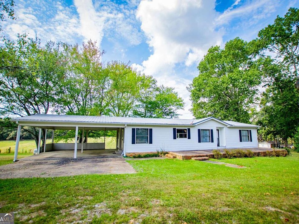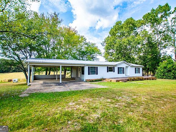 This is an absolutely gorgeous setting in beautiful Ranburne, Alabama. Low maintenance vinyl sided double wide on paved road with a metal roof on over an acre. 3 bedroom, 2 baths, LVP flooring, fireplace, dining and laundry rooms, and attached double carport. Small storage building/workshop with power, fruit vines, and beautiful views.