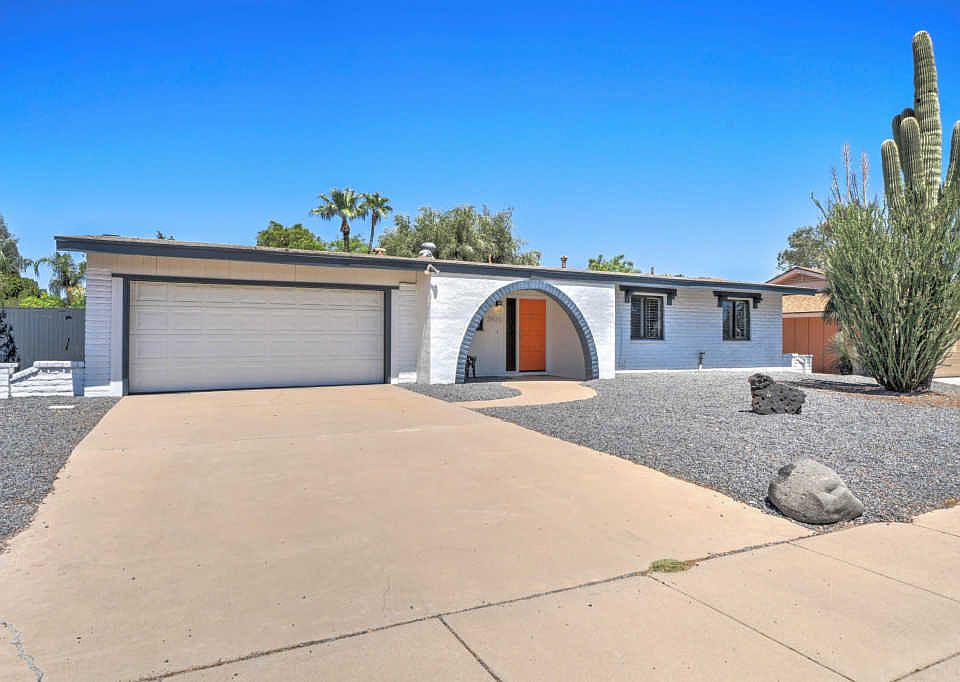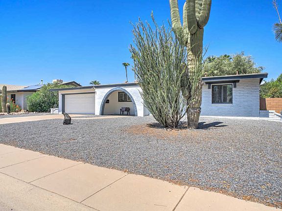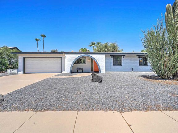 This charming house on Lupine Ave is definitely not going to last long. Pull up and notice the fresh paint with gorgeous bright orange door. Step inside the house using the electronic keyless entry and instantly have a view straight out to the pool. The bright walls and the light gray faux wood tiled floors keep the area nice and airy. Head straight back into the living room. The open space is located next to the formal eating area with an elegant chandelier light fixture. Moving through the dining room you will enter is the newly updated kitchen. This white kitchen has a plethora of cabinet space with a built in desk area as well. Directly off of the kitchen is the family/game room. The focal wall of the room boasts an inviting brick fireplace. The entire wall is painted a calming gray. There is a direct entrance from the game room to the backyard. Which will be great for entertaining!! The 2 additional bedrooms are of similar size and share a beautifully updated bathroom. The black and white color scheme is tied together brilliantly with the fun tile work on the floor. Heading back to the master suite you will walk in to a nice large room with his and her closets. The en suite has a recently updated classy walk in shower. There is a direct entrance from the en suite leading into the backyard. Heading into backyard you will step onto a wooden deck area that is completely covered from the Arizona sun. This oversized lot provides plenty of area for everyone to spread out and have their own spaces. This house is not going to last long at all. Make a ShowingTime TODAY before you miss out on your clients dream home!!