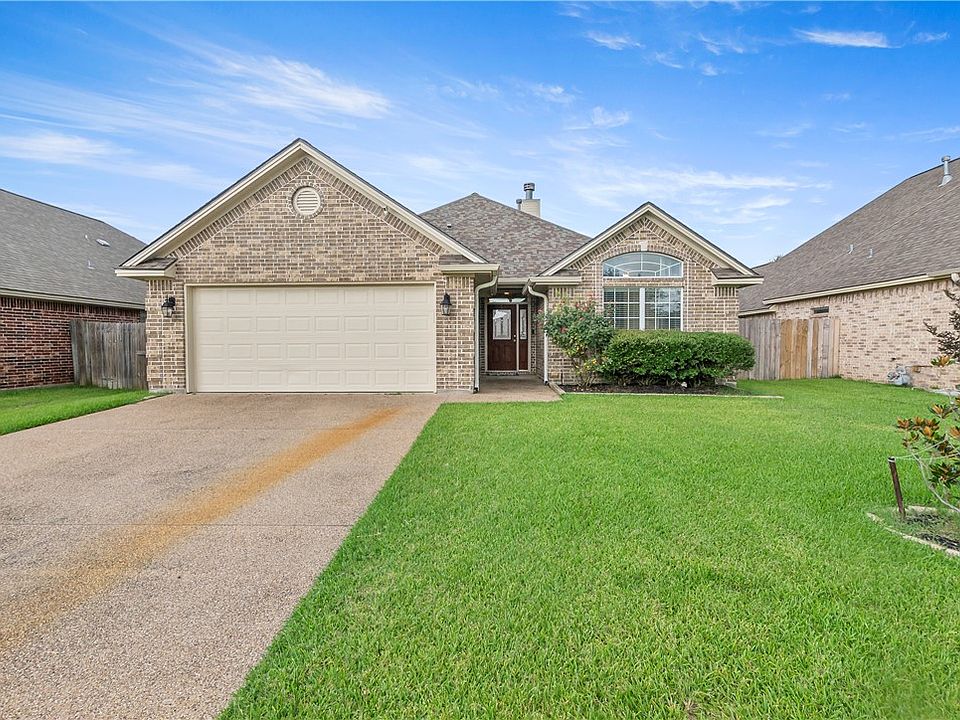 This delightful 3-bedroom, 2-bathroom with a 2-car garage is perfectly suited for those seeking ease of living coupled with modern touches. Step inside to discover a warm and inviting living area graced with hardwood floors and a cozy fireplace. The homes design seamlessly connects the living space to a generously sized kitchen and dining area.The primary suite complete with an en-suite bathroom, features a garden tub. Two additional spacious bedrooms provide for guest accommodations or a home office. Outside, a private patio in the backyard is surrounded by mature landscaping. This outdoor space is designed for both leisure and entertainment. The home's exterior is as charming as its interior, providing excellent curb appeal in a picturesque setting. Featuring a BRAND NEW HVAC system installed July 2025, your summer days will be cool for years to come. This property not only provides a wonderful place to call home but also a prime location with easy access to College Station's best shopping and dining. Don't miss the opportunity to make it yours!