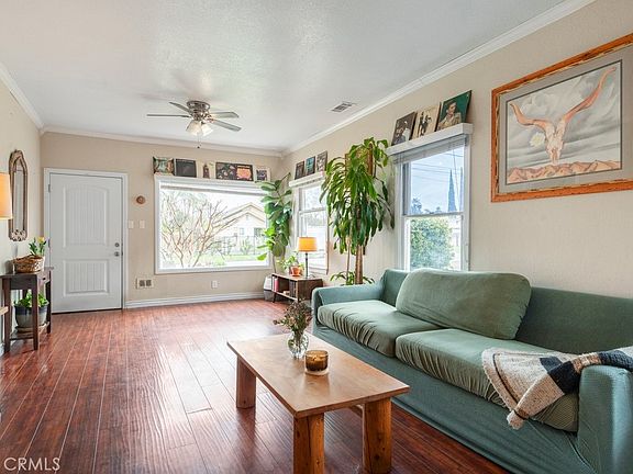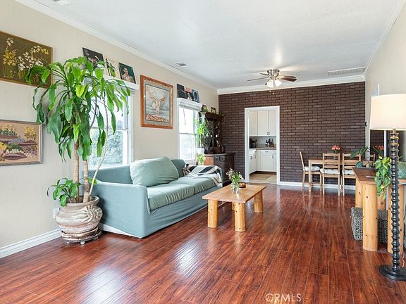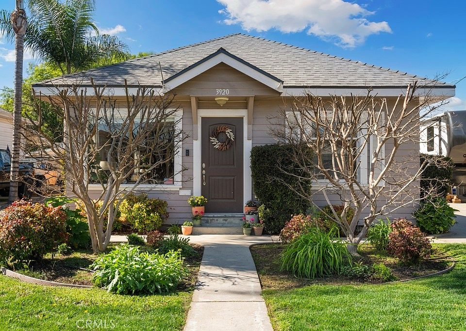 Discover this charming 1930s 2-bedroom, 1.5-bathroom home in Riverside, showcasing impressive curb appeal. As you approach, the thoughtfully landscaped property welcomes you, leading you through the front door into a bright and airy, open-concept living and dining area. Tons of natural light pours in through the numerous windows found throughout. This home features two bedrooms that share a well-appointed full bathroom, with an additional separate guest bath for added convenience. The bright white kitchen has been updated and is complete with ample cabinet space for all your storage needs, and the indoor laundry space is a convenient bonus. Significant upgrades include a brand-new roof and HVAC system (both replaced less than 1.5 years ago), all-new backyard fencing, and a new dishwasher. Situated on a generously-sized lot, the property offers ample parking options, including RV parking, an oversized driveway, and a detached one-car garage. The backyard is a true entertainer's retreat, featuring a covered patio for outdoor dining, a separately gated garden area with multiple raised planter beds, artificial turf, a greenhouse, and a cozy fire pit. Additionally, an approximately 12' x 14' cellar provides valuable extra storage space. Conveniently located minutes from shopping, dining, Cal Baptist University, and the 91 freeway, don't miss the chance to call this adorable property your new home!