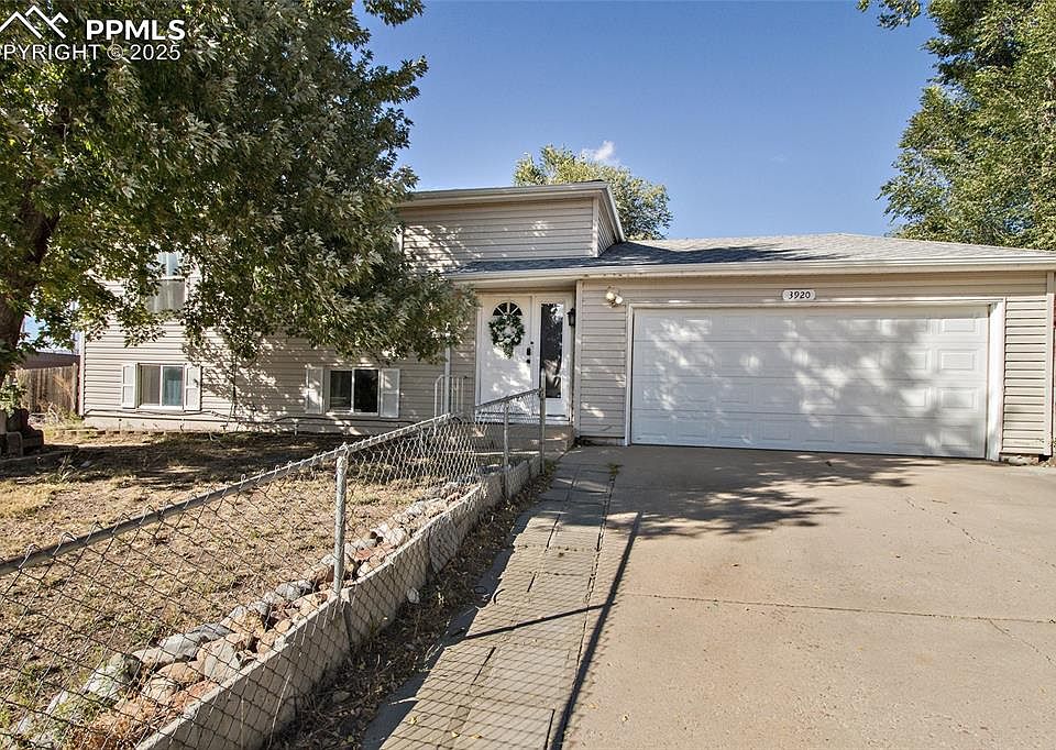 This bi-level home sits on a large corner lot with mountain views and is convenient to shopping and restaurants with easy access to Fort Carson and Peterson AFB. on the upper level, you'll find a living room, kitchen with eat-in dining, 2 bedrooms and a full bathroom. On the lower level, enjoy a family room and 2 additional bedrooms with another bathroom. New air conditioner 2023.