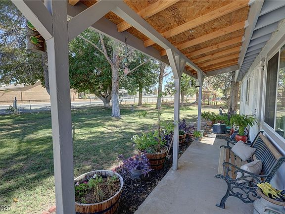 Discover this inviting 3-bedroom, 2-bathroom home on a spacious half-acre lot in the desirable north end of Pahrump. Surrounded by mature trees and desert landscaping, this property offers both charm and privacy. Inside, you’ll find a comfortable floor plan with plenty of natural light. Step outside to enjoy a covered patio, perfect for entertaining or relaxing while taking in the peaceful setting. With room to grow and a prime location, this home is ready to welcome its new owners.