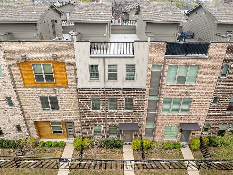 Character and style shine in this brownstone-inspired 3-level townhome with gated front yard. Vibrant neighborhood with dining, coffee houses and shops within walking distance. Minutes drive to Deep Ellum, downtown, uptown, lower Greenville, and Baylor Hospital. A bright and welcoming bonus room entry inside the front door with a closet, organizational cabinet and a reading spot. 2nd level with bright living-dining great room featuring chef's kitchen with ss appliances, 5 burner gas stove, quartz countertops, island and bar seating, abundant cabinets to ceiling height, under-mount lighting, elongated subway tile backsplash, space for wine cooler. Floor three with owner's suite, double vanity, walk in closet and extended shower. Bedroom 2 is light filled with full ensuite bath. 4th floor features large walk in storage closet and sprawling rooftop deck with lighting. Enjoy a spectacular view of the Dallas skyline while meditating, exercising or entertaining friends.