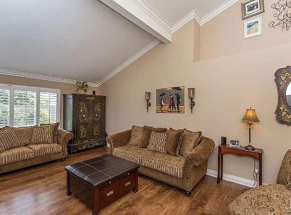 Welcome to this lovely 3 bedroom, 2 bathroom, 1846 sqft home on large lot in desirable Steeple Hill in South Moorpark. As you walk inside you'll know this one is special. There are plantation shutters and crown molding throughout this gorgeous home. The living room has wood-like floors and a vaulted ceiling making it feel even more spacious. Cozy double-sided brick fireplace in living and family rooms. The eat-in kitchen has granite counters with beveled edges, stainless steel appliances, full tiled backsplash, recessed lights and center island. The adjacent family room has new slider door and vaulted ceiling. There is a laundry room conveniently located off the kitchen. The master bedroom has ceiling fan, vaulted ceiling, new slider door and 2 closets, one of which is a walk-in. The master bathroom has dual sinks and stall shower. There are 2 nice-sized secondary bedrooms, both with walk-in closets and ceiling fans. The other bathroom has dual sinks and combination tub/shower. 2-car attached garage with shelving and direct access to the home. You'll enjoy entertaining in this large private backyard with covered patio, in-ground spa, grassy area & local mountain views. Close to shops, restaurants, parks, freeways & excellent schools. Welcome Home!