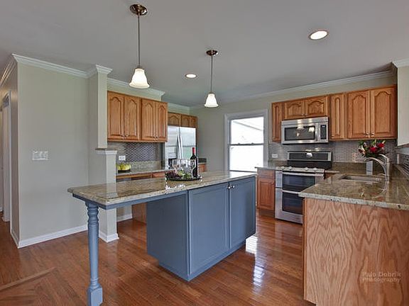 WOW! PRISTINE rental in Barrington school district! Hardwood floors - no carpeting! Beautifully updated throughout! Open floor plan, with huge family/living area open to fabulous kitchen and dining area. Kitchen features beautiful quartz counters and large quartz island with seating space, stainless steel appliances, updated backsplash & planning desk. Family/living area has a brick fireplace with gas logs & a ceiling fan. The dining area is enhanced by a bay window. The family/living area opens to a big screened porch with tile floor and a decorative built-in heater -- a wonderful place for relaxing outdoors and entertaining without bugs! The laundry closet is located off the family/living area and has a newer, stackable stainless washer & gas dryer plus a utility sink. Welcome your guests into the separate foyer with a decorative front door with sidelights and a large coat closet. A generous, attached 2-car garage is conveniently located off the foyer. From the open family/kitchen area, you will find a hallway leading to the 3 bedrooms and 2 bathrooms. Both bathrooms have been fully updated with quartz vanities, newer sinks, faucets, mirrors and floor. The primary bath has a shower over tub; the hall bath has a very attractive, large walk-in shower. The primary bedroom has a walk-in closet & a ceiling fan. All bedrooms have blinds & generous closet space. This home is light & bright and definitely move-in ready! NO SMOKERS & NO PETS ALLOWED! Good credit is essential, 700+ preferred. No smoking & no pets allowed. Tenant pays all utilities. Owner pays for lawn care. Tenant responsible for snow removal. Security deposit (1 month's rent) due at lease signing. First month's rent due at occupancy. Home is vacant and easy to show! Home is in Barrington school district 220; bus transportation provided by the district. This home has been beautifully and fully updated! 2 car attached garage plus private driveway. Don't miss this one!