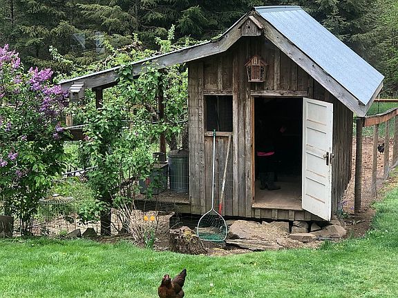 Lovely country Rustic home on beautiful acreage for gardening or animals. Main living area on lower level, bedrooms upstairs. Quiet road -Great neighborhood -County maintained road -50x50 finished shop -Enclosed RV parking -game room -Over 6 acres -over 3,000 sqft -Hi efficiency water heater -Generator breaker for hooking up a generator -outdoor RV clean out -custom cabinets -fir hardwood floor -master bedroom has jetted tub - heated tile floor in kitchen -4 bed -3.5 bath -3 bonus rooms (storage, craft, office) -covered porch -chicken coop -fenced in garden/orchard -outdoor hydrants -season creek -southern exposure -large trees with great characteristics -lots of history on the property and in the area.