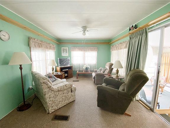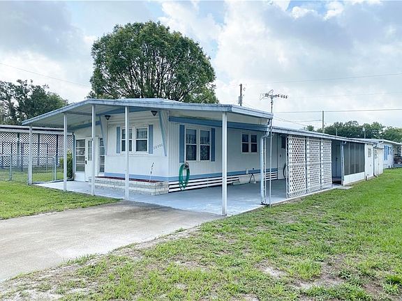 LOW COST LIVING IN SUNNY FLORIDA! Looking for that perfect winter retreat? Looking for your next rental home? or looking for full-time Florida living with NO HOA fees? NO LOT RENT! This well kept Single Wide Mobile home comes furnished and is just as cute as can be. It has an open floor plan with a FLORIDA room addition that allows you to have more space for entertaining. Eat In Dining space in the kitchen, Large Master bedroom, nice size guest bedroom with built in storage is great for company. Outside laundry room just off the carport. Fenced side yard , shed in the back and located just a block away from the grocery store and local eatery, just a few miles from Florida Medical offices, hospitals and more shopping and dining areas.