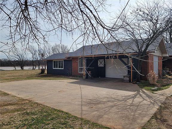$5000 BUYERS CREDIT. Lakefront home w/ private country living on a peninsula on Tecumseh Lake. NEW roof, gutters, deck & dock; 4 bedroom, 3 bath, viking appliances, new dishwasher, concrete counters, large pantry, island, eating bar, dining room, living room with wood stove, large owners suite with built in storage, double shower , jetted tub, walk-in closet, separate vanities; 2 large bedrooms with walk-in closet, office, spiral metal staircase to possible 3rd living area, dry storm shelter with electric located inside house; zoned central h/a; large deck & porch off back of living area with lake views, 1 car garage; Windmill with original pump, orchard, many mature, productive pecan trees, separate RV utilities, pipe & cable lots, barn, metal shop with electric, 2 storage buildings, chicken house, private drive, 5min to Shawnee, Bethel schools, zoned agriculture, private dock w/ great fishing, utilities are OGE electric, ONG, rural water, 2 septic systems, all on 5ac. Home warranty