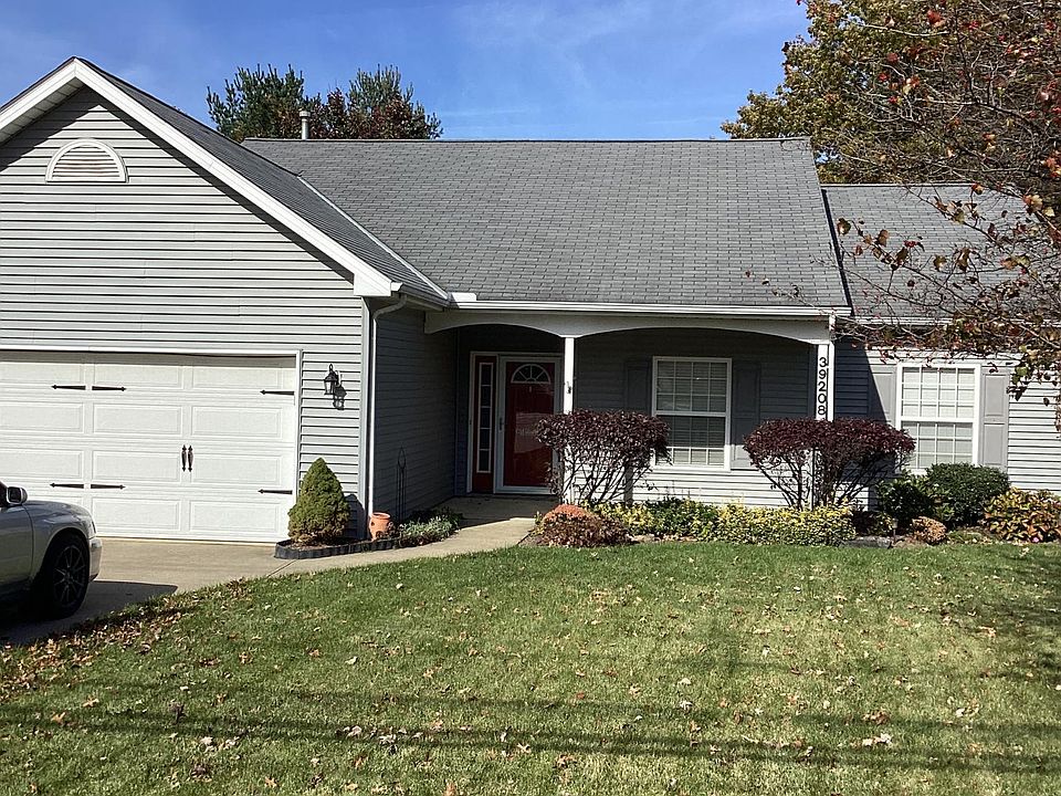 Lovely open concept ranch home. 2 bedrooms plus den which could possibly used as third bedroom. 2 full bathrooms, one part of en-suite. Large walk-in closet in master bedroom. Gas fireplace in living room. Sliding glass doors off dining area that lead to patio overlooking park like area. Gas heat, central air. Laundry room with washer and dryer. Kitchen has gas stove, refrigerator, dishwasher, and pantry. Attached 2 car garage with opener. Perfect spacious home for those needing one level living. Beautifully landscaped yard. Tenant pays all utilities. Tenant responsible for lawn maintenance. No smoking.