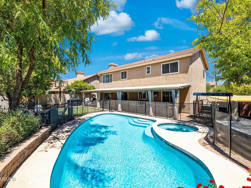 Sparkling poolCovered patioModern led lightingFresh interior paintAmple cabinetry for storageWalk-in showerSpacious primary suite
