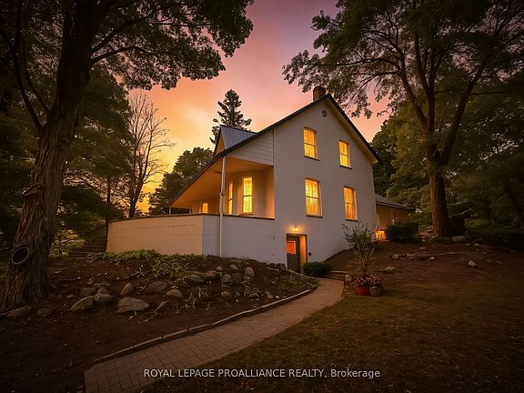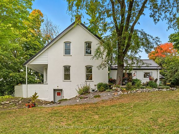 This striking Ontario Cottage style home in rural Camborne was built in 1850 and has been lovingly cared for and expanded through the years. It is now a warm, eclectic, sophisticated home of 3,052 sq ft, set on over 5 private acres of mature mixed forest and landscaping that includes perennial gardens, raised vegetable garden beds and apple, pear, and cherry trees. Though rich in history and charm, this home is perfect for a modern lifestyle. The current owners worked full time from the front parlour, which they used as a home office. Imagine being surrounded by nature daily, while amenities like groceries and the hardware store are only an 11-minute drive away in Cobourg. And when the workday is done, walk out your door and hike the groomed trails or just sit on the porch while taking in the stunning views of the surrounding rolling countryside, and Lake Ontario in the distance. The property attracts dozens of bird species including orioles, indigo buntings, and at least six types of woodpeckers! Slate flooring, cathedral ceilings and statement details set the stage for the Chefs country kitchen, dining area and family room- the true heart of the home. With 4 beds, 3 baths, a spacious floor plan and a private, partially covered front porch that could easily accommodate 20+ people, this home is perfect for a family, someone who likes to entertain, someone whos looking for office, studio, fitness or games room space, historic home lovers or people who are looking for quiet rural privacy. Significant updates include: 2021 - metal roof; eavestroughs with leaf screening; downspouts; central air conditioning; high-efficiency heat pump with 2 heads and room for a third; main floor bathroom gut renovation; all toilets replaced; 2022 - maximized attic insulation; fridge; washing machine; 2023 - dishwasher; 2024 - water softener; UV light and filter; and ongoing landscaping.