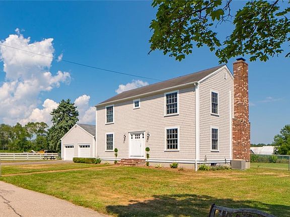 Enjoy all this property has to offer on this exclusive compound located on a private 5 acre parcel. Horses permitted. Six stall barn with wash stall includes a heated/air conditioned office and bath and storage area. There are numerous outbuildings recently re-sided with AZEK trim. Riding ring, paddocks, electric fence. Recently renovated Colonial built in 1987 with 3 bedrooms and 2.5 baths includes new Pella windows, gleaming hardwoods, office and two fireplaces. Updated kitchen with stainless appliances and marble countertops opens to a large slider onto a deck with expansive views of the fields and fenced rear yard. Second floor is air conditioned and includes a primary with bath and two additional bedrooms with bath. Pastoral location yet close to the University of Rhode Island, the Kingston Train Station, Wakefield and beautiful beaches. Recreation center is located nearby with tennis courts.