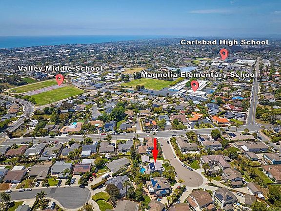 Exceptional Coastal Living in Prime Olde Carlsbad - Your Private Retreat Awaits! Discover an unparalleled opportunity in the highly sought-after Olde Carlsbad neighborhood. Situated on a peaceful cul-de-sac, this impressive single-family home offers elegant living and resort-style amenities. Inside, you will find 4 bedrooms and 3 bathrooms within a spacious 3.004 sq ft. floor plan. The heart of the home is a beautifully appointed kitchen featuring all new Viking appliances. This meticulously maintained residence sits on a substantial 11,600 sq ft. lot, offering a true outdoor oasis. Outdoor highlights: Enjoy a sparking pool and Jacuzzi, perfect for relaxation and entertaining. Gather around the stylish gas fire pit on cool evenings. The roomy gazebo, complete with lights and furniture, provides a comfortable space for al fresco living. The property showcases professional landscaping and gardening, creating a serene and inviting ambiance. Location, Location, Location: Just 1.2 miles from pristine beaches and the vibrant downtown Carlsbad Village, a diverse array of excellent shops and restaurants. Walking distance to award-winning Magnolia Elementary, Valley Middle, and Carlsbad High School. Additional features include owned solar panels for energy efficiency. This is a rare opportunity to embrace the coveted Carlsbad lifestyle. Schedule your private showing today.