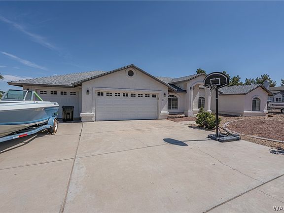 Stunning Home on almost Half Acre in Kingman's very own Hualapai Foothill Estates! 3 Bed/4 Bath PLUS an extra Office/Den. Two of the bedrooms have their own bathrooms making them both Master Suites, one including an amazing JETTED TUB! Office/Den has its own exterior private access and connects directly to 4th bathroom. The split floor plan provides privacy for extra guests! Spacious living room features a Gas-Log Fireplace and Vaulted Ceilings. Plus another extra room which could be a 2nd living area, family room, or even formal dining area. The partially open kitchen includes a breakfast bar and granite countertops. 3 Car Garage features 2 separate bays, wash station, and attic storage. Plenty of room for activities in the landscaped back-yard featuring block wall, mature fruit trees, a utility shed, and sandpit rec area. Automatic water system & security system installed. Kingman is about 45 minutes away from Laughlin, 1 hour from Lake Havasu, 1.5 hours from Las Vegas.