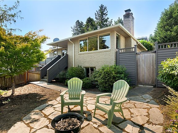Perfect Location! Cool Mid-century home 4 BDR/2 BTH. Spacious living rm. Formal dining rm. Gourmet kitchen w/ quality SS appliances. View of sound from living rm & front yard. Master BDR French doors open to level backyard. Lower level 2nd living rm, FPLC, office/play/artist area & separate entrance. Utility rm w/ plenty of storage. Spacious private back yard w/ 2 outbuildings. 3 parks nearby. Easy access to transportation, schools, restaurants, shopping & all that West Seattle has to offer.
