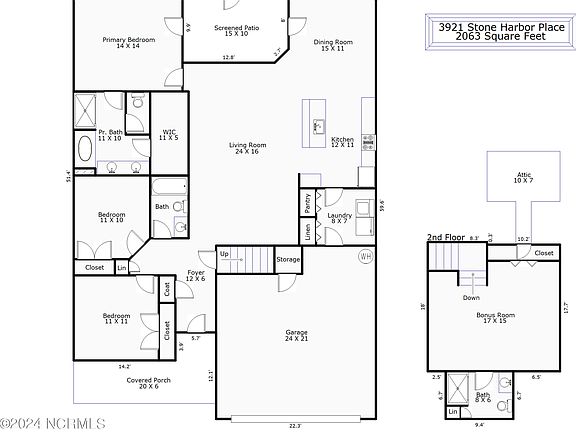 Experience the allure of coastal living in this meticulously maintained 3 to 4 bedroom, three-bath home nestled in Windsor Park. You and your guests will be greeted by the covered front porch, an idyllic spot for morning coffee or neighborly chats. Inside, gleaming hardwood floors guide you through the open-concept living area, adorned in neutral tones awaiting your personal touch. Vaulted ceilings and open sight-lines enhance the space making it perfect for families and entertaining. The well equipped kitchen boasts subway tile black splash, granite countertops and SS appliances perfect for culinary delights and casual snacks alike. Entertain effortlessly with patio doors off the dining area leading to a screened porch and backyard for outdoor grilling and entertaining. The spacious dining area is perfect for both casual meals and festive holiday gatherings with family and friends. Find yourself relaxing on your screened porch, engaged in conversation, or ensconced in your favorite best seller or magazine. Add your favorite beverage to the mix and the perfect picture is complete. Retreat to the generous owner's suite, featuring a tray ceiling for a little architectural interest, patio access to the screened porch, and a luxurious ensuite with a separate shower and soaking tub for relaxing bubble baths. Discover the versatility in the bonus room with a private bath, ideal for a guest or fourth bedroom, media room, or home office. The 2 car garage provides built in shelves, storage space, and workbench. The fenced yard invites outdoor enjoyment for both two and four legged friends, while community amenities like sidewalks, parks, and community pool enhance the neighborhood charm. With downtown Historic Wilmington's attractions, shops, restaurants and our beautiful local beaches just minutes away, this home offers coastal living at its finest. Don't miss the opportunity to make lasting memories in this coastal retreat. Schedule your showing today!