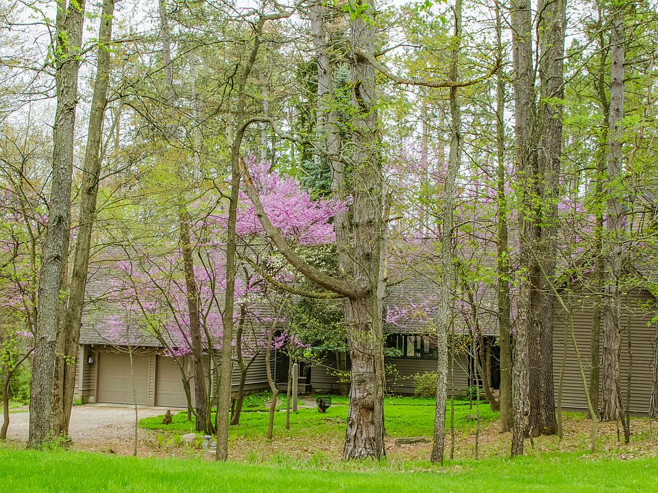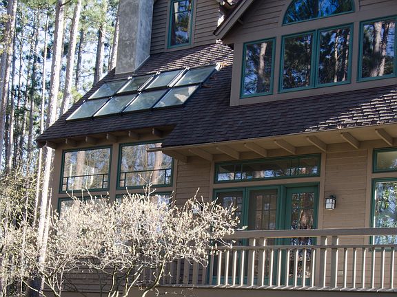 Distinctive, light-filled home designed by renowned architect Marc Rueter & built by David Wall/Coppernail on a Natural Beauty Road. Craftsman style with contemporary flair, this south-facing home on 3.33 acres is surrounded by tall pines. The open concept invites the outdoors in w/walls of windows & many skylights. Natural materials were used thru-out. Attention to detail & quality of design makes for a pleasing aesthetic, echoing the natural setting. Upon approach, you will appreciate the pitched roof w/broad overhangs & rafters, cedar exterior, detailed doors & windows, inviting stone walkway & covered front porch w/pine columns. The liv/din rm creates drama w/skylights to view the pines & sky, Carolina bluestone FP, blt-in bkcases & fr drs to deck. Chefs kitchen w/Grabill hickory cabs, SS/gran ctops, hi-end appl incl Viking gas R/O & island. Pleasing open fam rm has cozy Vermont Castings woodstove w/a sunroom feeling surrounded by windows. 1st flr M suite w/vaulted ceiling, pine beams & inviting spa tub area in M. bath. 2nd flr balcony/ study leads to 2nd bdrm & bath. 3rd flr magical turret is a surprise - can be a study or guest retreat. W/O LL has rec area or bdrm & par fin studio/craft room. The perfect Not So Big House''!