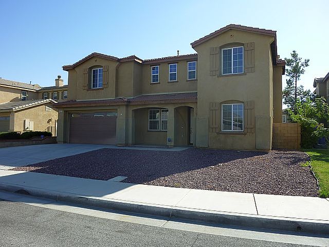 Beautiful Executive 6 Bedroom, 4 Bath plus Loft West Palmdale home! Nearly 4000 square feet and newer with upgrades galore! Huge gourmet tiled kitchen with large island, counter, breakfast area; one downstairs bedroom with full bath; custom paint throughout; upgraded tiled baths; new carpet and paint, spacious den with fireplace and built-in surround sound system; massive loft with hardwood floors; lovely master suite with retreat; desertscape yards front and back with large rear cement patio; 3 car garage; $2,550.00 a month. Call Golden Foundation for more info at 661-265-1031. NO PETS! Not Section 8 Approved.