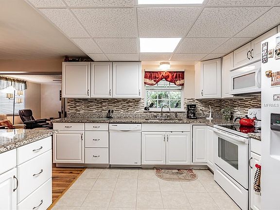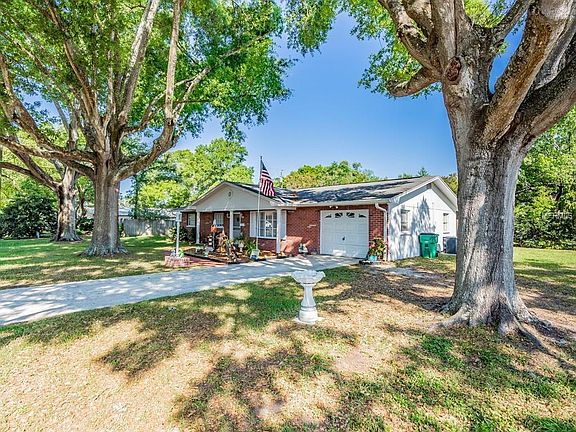 WHAT A GREAT PLACE to call HOME in Sunny Florida! Repainted inside with REMODELED kitchen... this Concrete block with BRICK accent home is ready for YOU! Storm door welcomes you to Enter into this Light, Bright, OPEN floorplan with new floors, new ceiling fans, new light fixtures and a GOURMET kitchen boasting Granite counters, new cabinets, Glass backsplash, Newer appliances in 11/2016, Ceramic Tile floor featuring deep closet pantry. Eat in Dining Room is Open to kitchen and Spacious Living room has Large windows to let in the natural light. Sliding pocket doors open to Leisure/Family room with insulated Roof and AC. Huge, rescreened Back porch adds more outdoor entertaining space when doors are open to leisure room. Private backyard has Tangerine tree with large side yard for portable carport (negotiable). 3 bedroom, 2 updated bath home has 6 double paned NEW WINDOWS, Roof replaced 2004, AC in 2011, Gutters added to home, new sewer line replaced from home to street. Situated on a Corner lot of a quiet street with detached workshop complete with windows, water softener plus electric to tinker on your workbench or store yard equipment. One car garage with easy access to kitchen and separate Laundry/Mud room includes washer and dryer, utility sink plus room for a freezer. Low Taxes, NO CDD and NO HOA fees⦠with easy access to schools and shopping⦠so bring all your toys and Move right in!