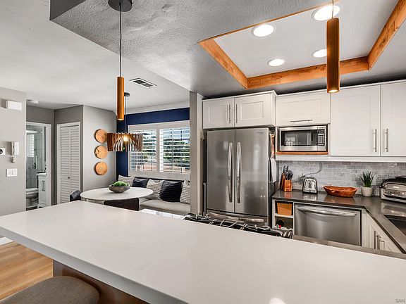 Unbelievable opportunity awaits! Enjoy this fully upgraded, top floor, corner unit that backs to a quiet alley and has LOW HOA dues. This quaint, gated complex is located on a small cul-de-sac, putting you mere blocks from all the Hillcrest amenities, while maintaining privacy. An open floor plan is illuminated with abundant natural light and provides seamless flow between the living room, dining area and kitchen. Gather in front of the cozy fireplace in the living area for added ambiance.