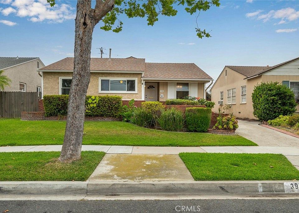 Welcome to this charming and well-maintained home located on an oversized lot in LAKEWOOD MUTUAL. This 4 bedroom, 3 bath features a freshly painted interior and a nice open floor plan. Offers a bright & airy dining area, a galley kitchen with white cabinetry, new stainless steel gas range and dishwasher, and a laundry area off the kitchen. Spacious living room with new recessed lighting is the central hub of the home and perfect for family gathering. Primary bedroom has a cozy brick fireplace, attached bathroom and a slider door for back yard access. Guest bedrooms are generous in size. Private back yard with covered patio, grass area, block wall fencing and detached garage. The garage is finished with built-in storage. Additional amenities include vinyl windows, partial refinished hardwood floors, A/C, ceiling fans and freshly painted exterior trim. The home is handicapped accessible. Conveniently located close to schools, shopping/dining, Lakewood Country Club, Long Beach Airport, and easy freeway access. This special home is ready and waiting for you!