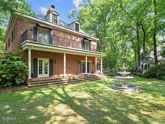 Welcome to this stunning home located in Trent Woods, an area located in New Bern, NC. As you enter the house through the bricked center foyer that runs almost the length of the house, you will be greeted by a beautiful circular staircase that sets the tone for the rest of the house. Foyer, Dining , Living room and Den freshly painted. The floors were buffed and polished. The formal living room with its cozy fireplace and the spacious formal dining room are perfect to entertain guests. The kitchen is a chef's dream, equipped with a gas cooktop and double oven. Right off of the kitchen is a large pantry and a craft room. The cozy den with its own fireplace and wet bar opens onto a side porch, perfect for relaxing.