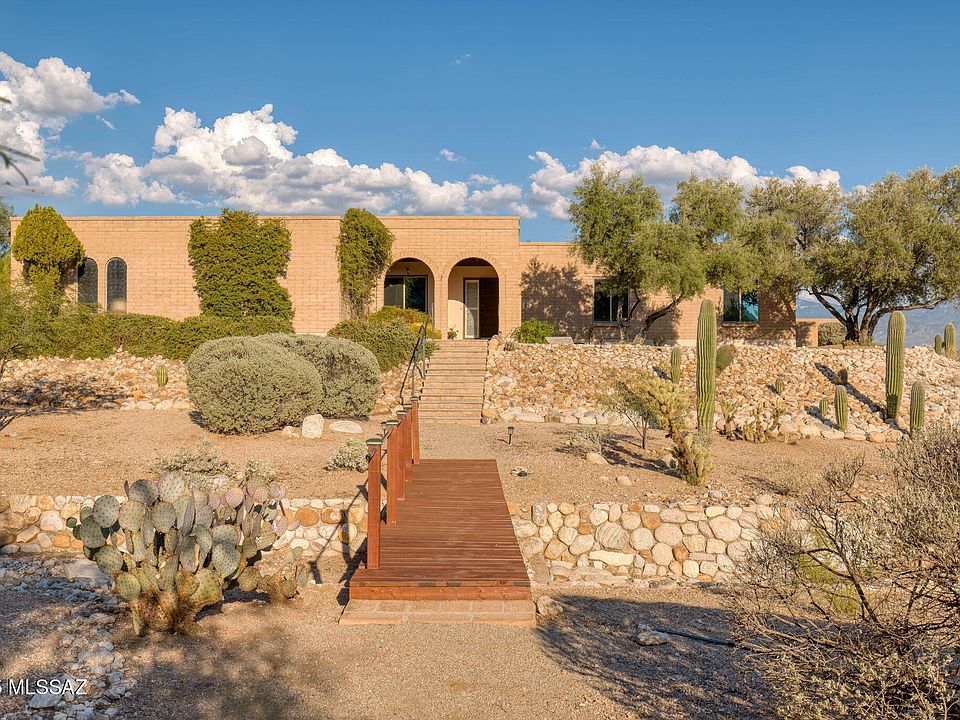 Hilltop retreat with panoramic views in Sabino Vista Heights. Perched above it all, this home offers a front-row seat to Tucson's ever-changing skies. From the moment you arrive, a charming bridge entry sets the tone, leading inside to light-filled spaces that blend timeless character with modern comfort. The foyer opens to spacious living & family rooms with patio access & sweeping mountain vistas framed by sparkling city lights. Gather around the raised-hearth fireplace or granite wet bar. The heart of the home is the bright kitchen with large center island with breakfast bar, granite counters & stainless appliances The primary suite enjoys patio access, dual closets, and a private bath, while 3 additional bedrooms provide flexibility for family, guests/office space. Outdoors multiple patios, mature desert landscaping, and a fenced pool/spa with new heater (2025) create the perfect setting for entertaining or soaking in unforgettable sunsets. Dual-pane windows and a new 2024 Trane HVAC ensure year-round comfort. Roof recently re-coated with transferable warranty. Long driveway provides adequate parking space, and a double gate to the backyard provides 25' of additional parking space. Ideally located close to shopping, restaurants. Minutes from Sabino Canyon for hiking, Whole Foods Market and Natural Grocers for everyday convenience, and Fruchthendler Elementary right in the neighborhood, this home is a Tucson classic, rich in charm, brimming with character, and surrounded by unforgettable views. he home is tucked within the neighborhood and located on a quiet dead end street. Bedroom 4 is currently being used for storage and is not included in the photos. This room has tile floors, a double closet and a sliding door to the back patio. Contact your favorite Realtor for your personal tour today!