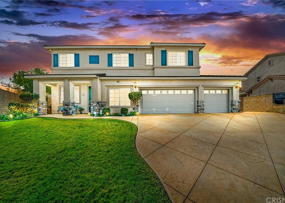Come Home for the Holidays to this Incredibly Spectacular West Palmdale/Rancho Vista IGG Pool/Spa home with over $200,000 of upgrades located on a uniquely fabulous almost 14,000 sq ft lot!!!COMPLETELY PAID for Solar Panels is just one of the features that any discriminating buyer will be sure to appreciate!!This wonderful floor plan boasts over 3100 sq ft of living space along with 6 generously sized bedrooms,3 full baths & a den/office or music room!!You will not be disappointed with the sellers choice of upgraded flooring t/out which includes gorgeous porcelain tile & custom pergo wood flooring.The seller has also added crown molding t/out the entire home in every room!!The gourmet chefs kitchen has all Quartz counter tops with large center island, maple cabinetry, top of the line appliances and walk-in pantry too!!Then enter into a true private entertainers backyard oasis that will absolutely take your breath away with a pebble tech IGG pool & steps leading up to your 10 person bubbling IGG jacuzzi!!There is also an end-to-end covered patio, meticulous landscaping, mature picturesque tall palm trees, lots of stamped colored concrete and built in BBQ area with stone counter tops along with a fridge,gas grill & sink perfect for parties or family get togethers!!There are large storage sheds on the side yard that are included in the buyers purchase too! To complete this wonderful home, there is even a 3 car garage with storage & a wrought iron gate/fence with paved RV access!