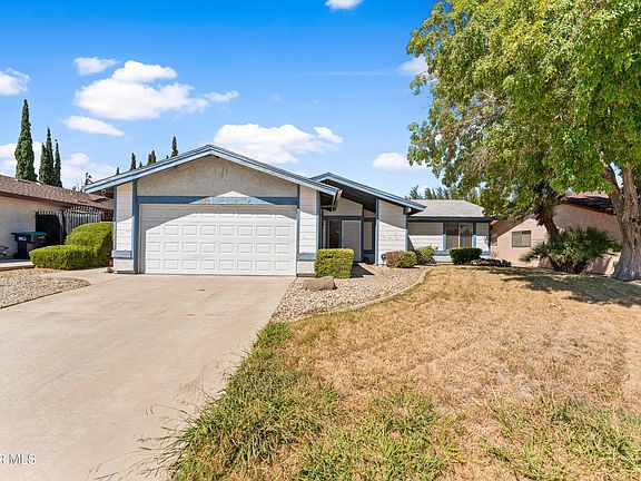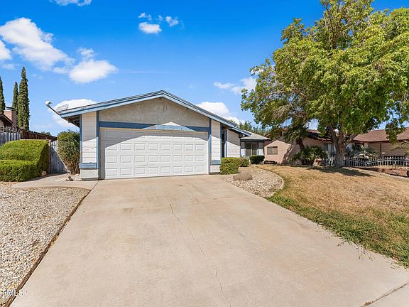 Located in the HEART of West Palmdale! This lovely single story offers 3 bedrooms, 2 full baths and 1,141 square feet of living space. Large living room with a vaulted ceiling and a brick fireplace. Spacious kitchen with a gas range, dishwasher and eating area. The primary bedroom has it's own private bath. Tile flooring throughout all common areas. 2 car attached garage and a large backyard with block wall fencing. Conveniently located close to Dos Caminos Elementary School, great restaurants and shopping PLUS easy freeway access!