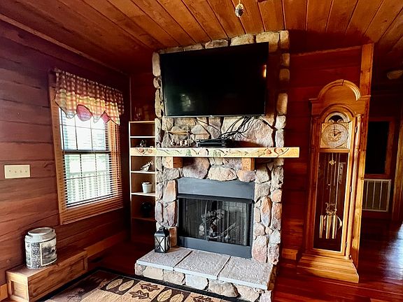 Nature lovers, homesteaders and hunters take notice! Over seventeen acres of fenced pasture, marketable timber and mature hardwood forest with a year round creek. This one level home is a wonderfully maintained cypress log cabin located in Bradley, SC, half way between Greenwood and McCormick, and less than an hour from Augusta GA. This beautiful cabin, built in 2007, has three bedrooms, two bathrooms, an open floor plan and is entirely floored in hardwood or ceramic tile. The kitchen comes fully equipped with all appliances. There is a gorgeous, stone gas fireplace with a hand carved mantle in the living room. You will enjoy the covered front porch and partially covered back deck, all recently upgraded with composite decking. Apx 100' behind the cabin, the land slopes gently to the hardwood creek bottom at the back of the property, providing lovely long-distance views. The roof is brand new in 2024. There is a big detached barn/garage with an attached carport and a tall camper port as well. This is a comfortable, modern cabin nestled in the most peaceful setting you can imagine. It is surrounded by Sumter National Forest, 20 minutes from Strom Thurmond Reservoir and it's only 30 minutes to Lake Russell and several state parks.