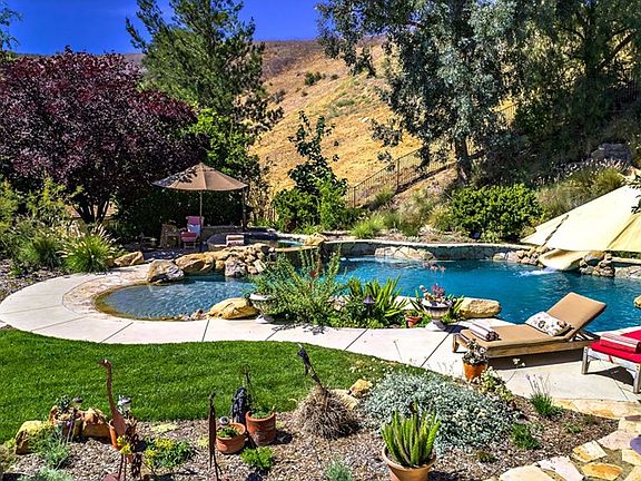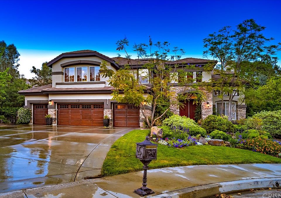 New Improved Price! Serious sellers! This property is impeccably maintained, move in ready and has it all! First time on the market in 22 years! Stunning and very loved traditional contemporary incredibly located on a premiere lot in The Estates of Agoura Hills. Perfectly situated at the end of a quiet cul de sac, this resort-style estate has it all; five bedrooms with a separate office that could be an additional 6th bedroom, five bathrooms, three fireplaces, a four-car garage, beach entry pool with custom water slide and sports court all on nearly one usable acre. The estate features an ideal entertainment layout, with large rooms, high ceilings, large open kitchen and family room combination with outdoor barbecue, grassy grounds and dry pond with whimsical bridge. The primary retreat has a double door entry with fireplace, sitting area and huge walk-in closet. Two separate staircases are featured for convenience. Hardwood floors are throughout. There is also bedroom suite located on the main floor with its own separate entrance. The grounds are lush with vegetable gardens and abundant fruit trees, picturesque and peaceful, backing conservancy grounds for ultimate privacy and entertaining estate. There are also two play houses!